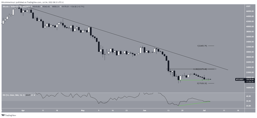 Bitcoin (BTC) está en proceso de crear un patrón alcista por encima del área de soporte de 19,200 dólares. El patrón también se combina con divergencia alcista en el RSI.