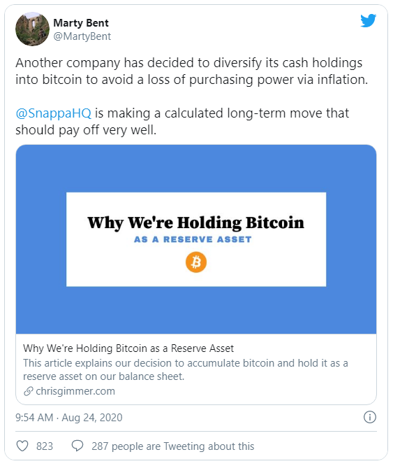 Snappa es la última compañía en admitir que tiene reservas de bitcoins como cobertura contra la inflación de las monedas fiduciarias. Solo este mes, BeInCrypto informó sobre dos historias similares.