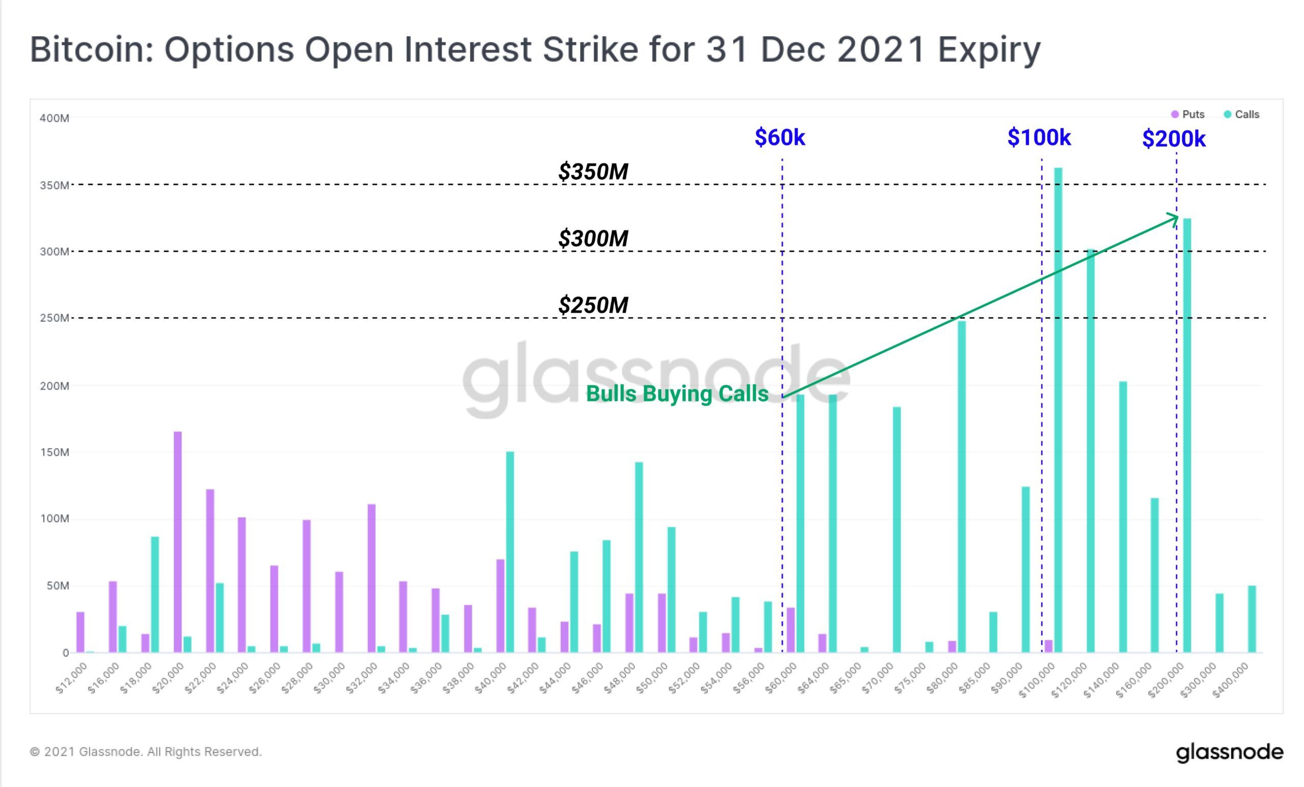 SponsoredLa data recogida proviene de especuladores con opciones que caducan el 31 de diciembre del 2021. Las posiciones muestran claramente que el sentimiento general para Bitcoin es alcista y adicionalmente muestra como los bulls de Bitcoin empiezan a predecir un precio futuro de BTC por encima de los 100.000 dólares, siendo por ahora la $100.000, $120.000 y $200.000 los posibles precios más populares.