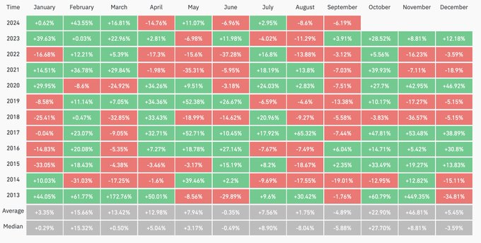 “Esto coincide aproximadamente con la caída de un solo dígito de septiembre experimentada en 2022, 2021, 2020, 2018 y 2017”, expuso Rekt Capital.