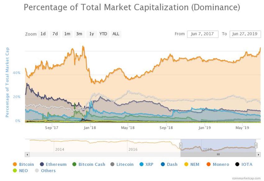 En el tuit anterior, Blokland observa que el valor relativo del mercado de altcoin ha bajado casi un 40 por ciento este año solamente, en comparación con el de Bitcoin. Esto ha puesto a Bitcoin de nuevo en casi un 63 por ciento de dominio, un alto nivel no observado desde diciembre de 2017.