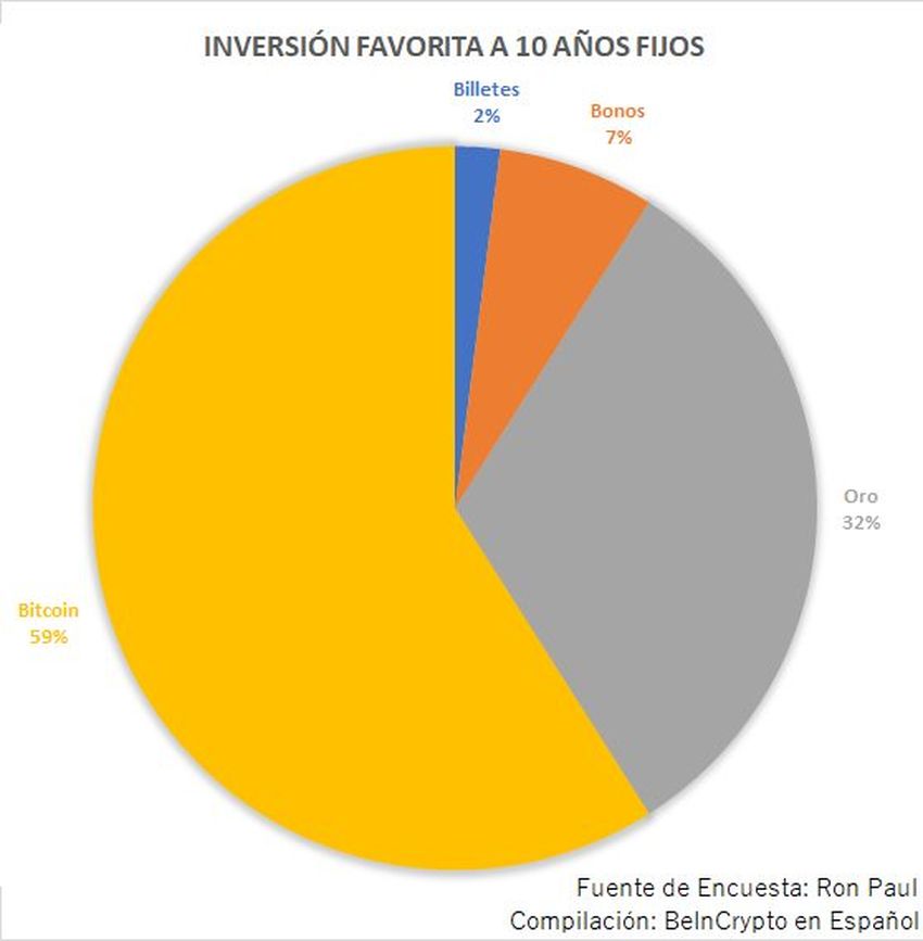 - 59% de los encuestados —45.636 personas— eligió al Bitcoin como la mejor inversión para sus próximos 10 años