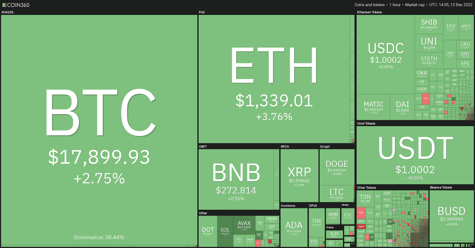 Los mercados de criptomonedas también respondieron con entusiasmo a la noticia. Dentro de los 30 minutos posteriores a la publicación de los datos de inflación, Bitcoin subió 2,75%, mientras que Ethereum saltó 3,76%. Durante el último día, la capitalización total del mercado de criptomonedas aumentó 3,5% hasta poco más de 900,000 millones de dólares.