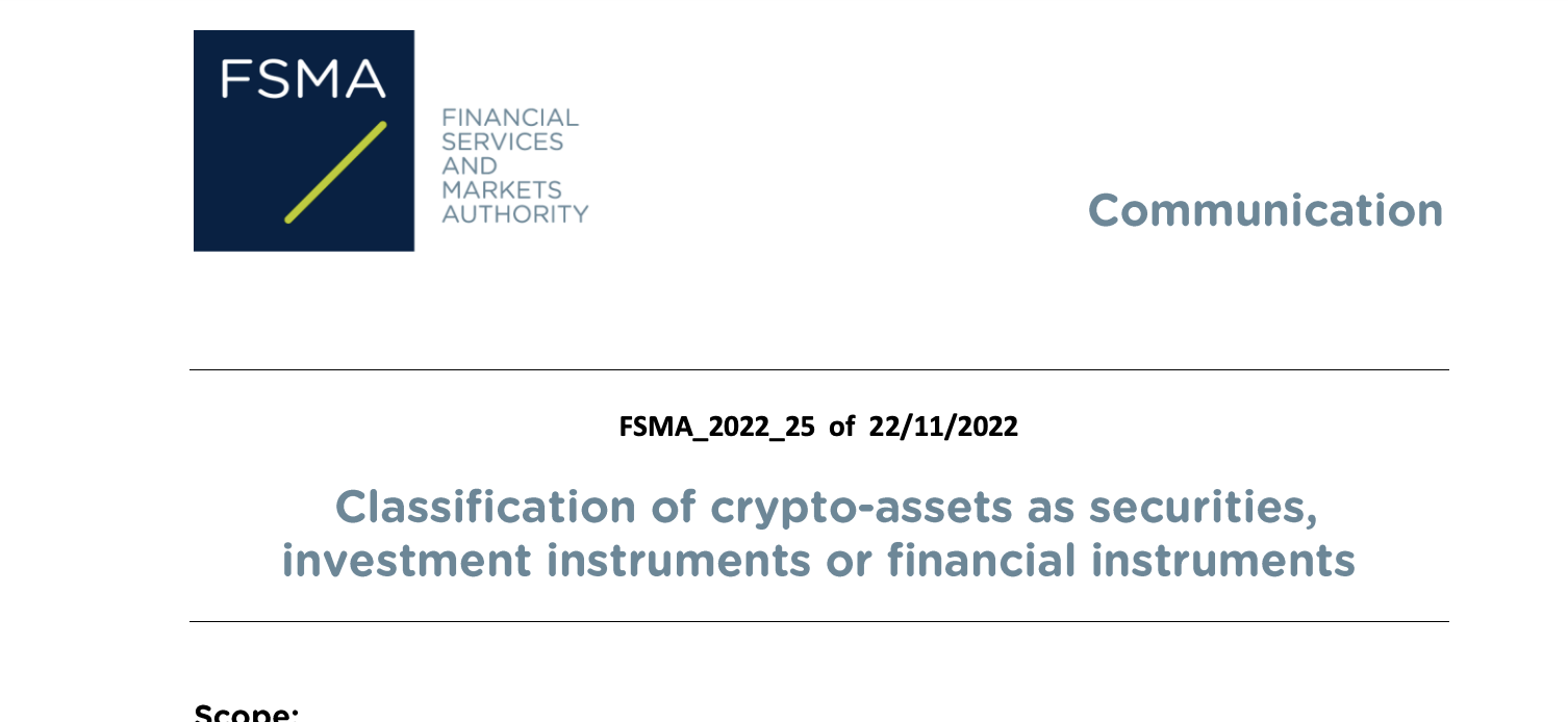 La Autoridad de Mercados y Servicios Financieros (FSMA) establece que si un activo no se incorpora a un instrumento, entonces no puede clasificarse como un valor o un instrumento de inversión.