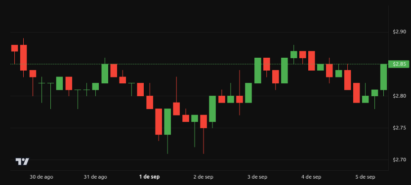 Desde un punto de vista técnico, el hecho de no recuperar los 3.00 dólares genera un panorama vulnerable. El soporte inmediato en 2.80 dólares es ahora la línea de defensa más cercana. Si llegara a perder ese nivel, se abriría la posibilidad de descensos adicionales hacia 2.70 dólares, lo que agravaría la situación.