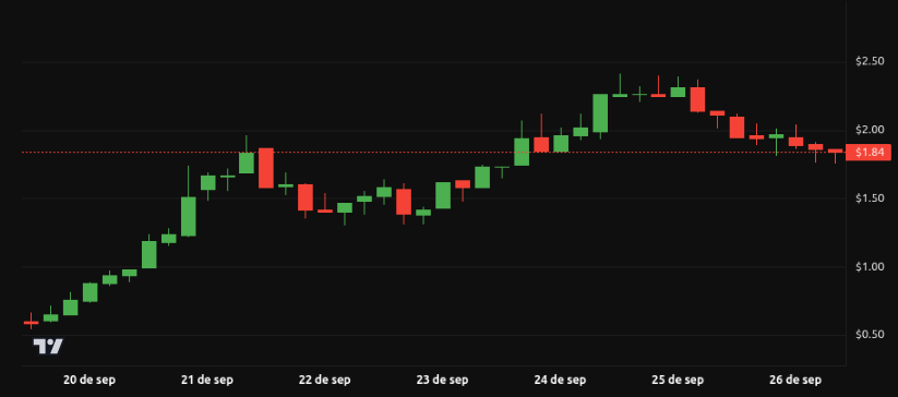 Aster (ASTER) cerró la semana cerca de 1.84 dólares, tras registrar una caída de más del 12 %. Durante la semana, el activo se movió entre máximos en torno a 2.12 dólares y mínimos cercanos a 1.75 dólares, evidenciando la alta volatilidad que caracteriza a este proyecto.