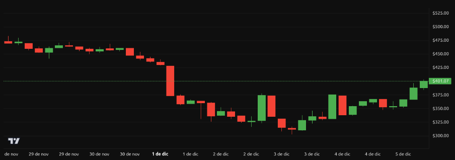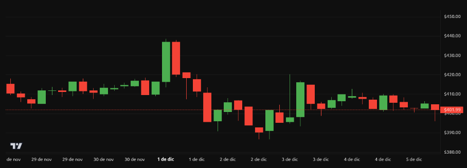 Monero ha mostrado buena estabilidad alrededor de 400 dólares, apoyado por un flujo constante de demanda tanto por uso como por interés en privacidad.