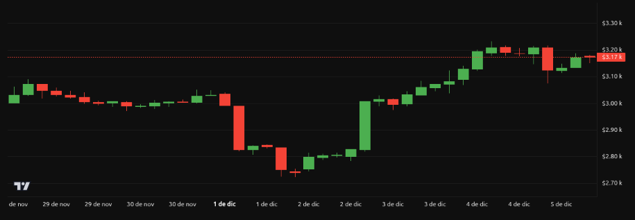 Si se mantiene por encima, podría intentar avanzar hacia 3,300-3,400 dólares, donde se ubica la resistencia principal. Aun así, el avance dependerá de la estabilidad de Bitcoin y de la lectura macroeconómica global.