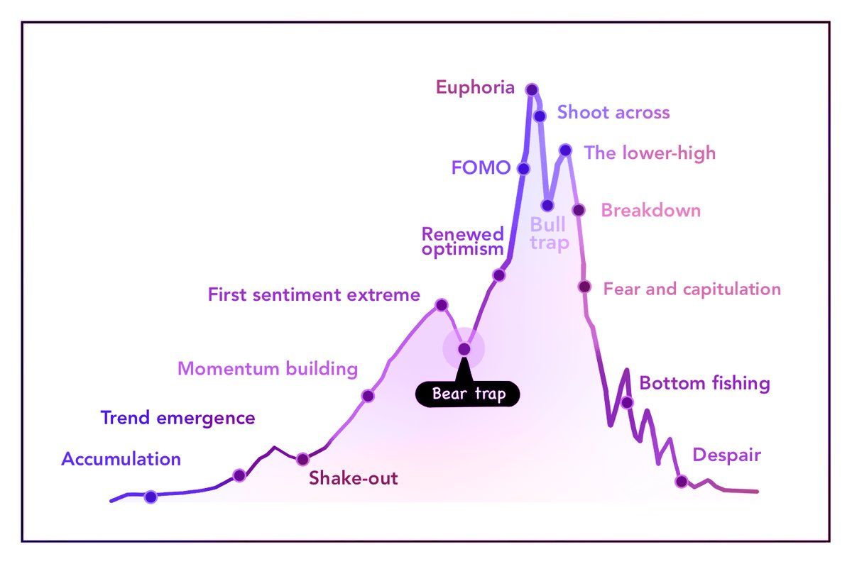 Según el analista cripto seudónimo Finish, los ciclos alcistas de Bitcoin suelen durar alrededor de nueve meses. Una trampa bajista a menudo aparece en el sexto mes del ciclo. Durante esta fase, el precio de Bitcoin cae bruscamente, causando pánico y ventas. Pero después de eso, el precio se recupera y alcanza nuevos máximos.