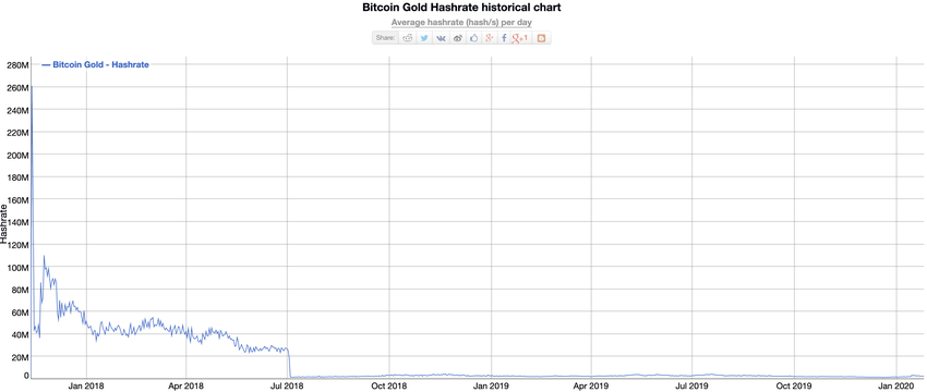 No es sorprendente que hayan elegido a Bitcoin Gold (BTG) debido a su caída en picado de la tasa de hash de la red. Desde julio del 2018, el hash rate del hardfork de Bitcoin ha llegado a casi cero. Al bajar el el ratio de hash a niveles ínfimos la seguridad es casi inexistente y llegar a minar la moneda digital hasta conseguir el 51% de su ratio de hash es relativamente barato. Si este ratio no cambio seguramente veamos más de estos ataques contra BTG.