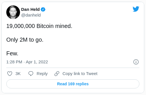 “Teniendo en cuenta que se espera que el último Bitcoin se mine en algún momento alrededor del año 2140, ¡no es poco!”