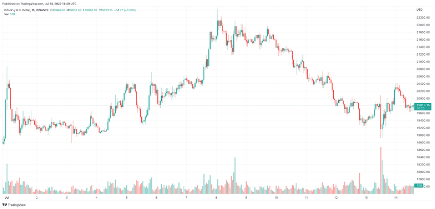 Aparte de un breve aumento durante el último día, BTC actualmente cotiza justo por debajo de 20,000 dólares.