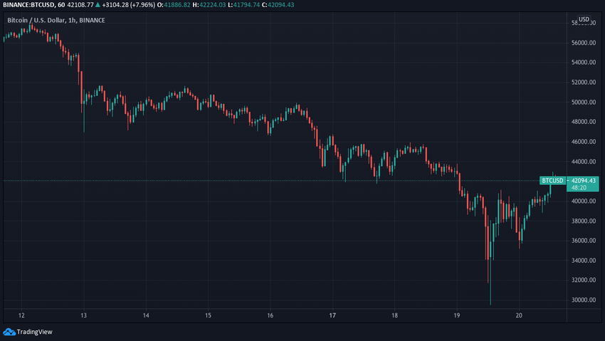 Se especula en gran medida que BTC tocó fondo el 19 de mayo debido a que las autoridades chinas prohibieron que las instituciones financieras y las empresas de pago brinden servicios relacionados con transacciones de criptomonedas.