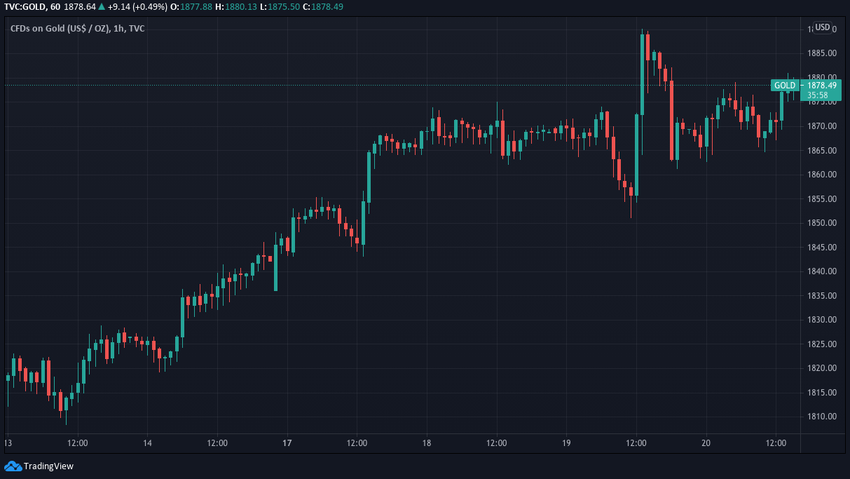 Luego osciló en alrededor de los 1,870 dólares durante los siguientes dos días, antes de caer a 1,855 dólares. Sin embargo, en ese punto, subió a 1,890 dólares, antes de caer a 1,865 dólares. Actualmente cotiza justo por encima de los 1,875 dólares.