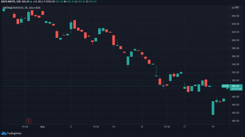 Sin embargo, el 10 de mayo, las acciones cayeron hasta los 560 dólares. Aunque volvió a subir a 680 dólares al día siguiente, la tendencia a la baja continuó y había caído por debajo de los 500 dólares para el 13 de mayo.