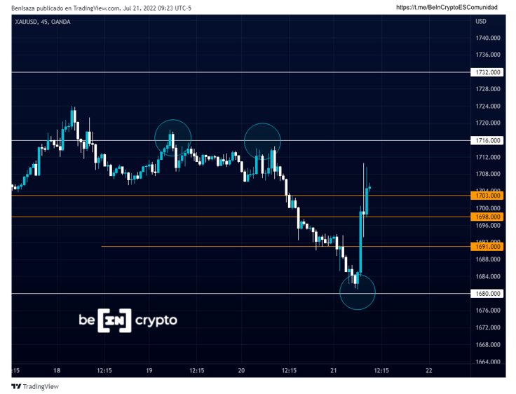 El oro recupera el nivel de los 1,700 dólares tras una desvalorización que lo llevo a cotizar mínimos de 1,680 dólares por onza