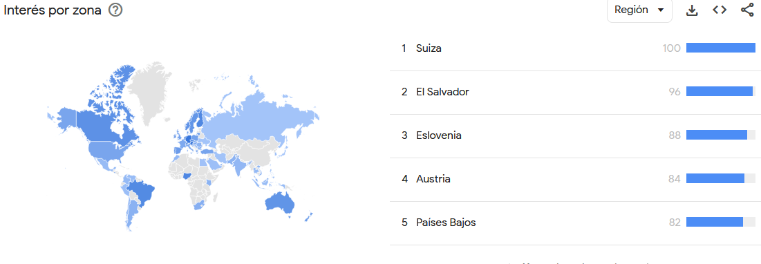 SponsoredEsta política ha dado visibilidad a El Salvador en el ámbito internacional, aumentando las búsquedas y el interés por Bitcoin. Suiza, por su parte, ha mostrado un interés continuo en el tema, impulsado por su reputación como centro financiero global y su creciente apertura hacia los activos digitales.