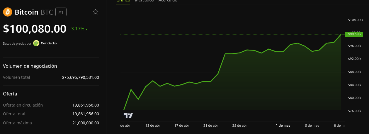SponsoredBitcoin alcanza los 100,000 dólares por primera vez en 3 meses