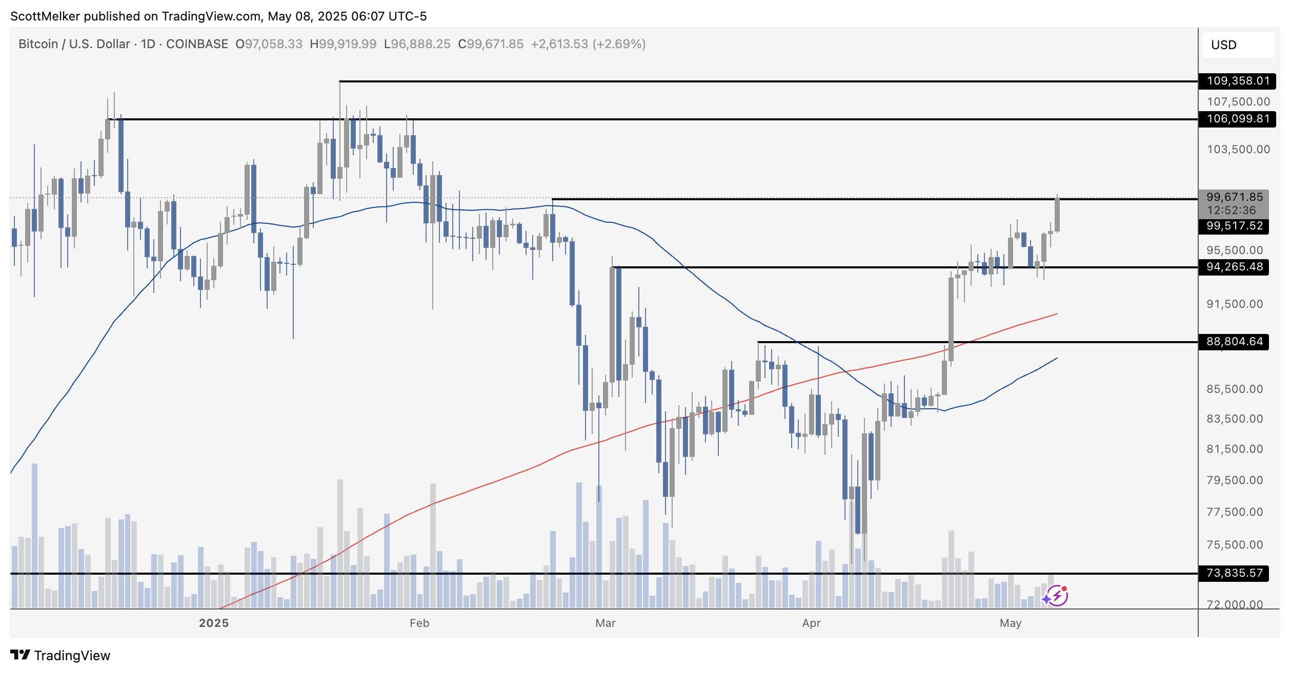 “Nivel clave aquí. Si esta zona de resistencia se rompe (básicamente aquí hasta los $100,000, porque las líneas son más bien ‘zonas’), el camino de regreso al máximo histórico será fluido. Un respiro aquí también estaría bien. Volver a probar el nivel hasta 88,000 sería una sólida oportunidad de compra”, señaló The Wolf Of All Streets en X.