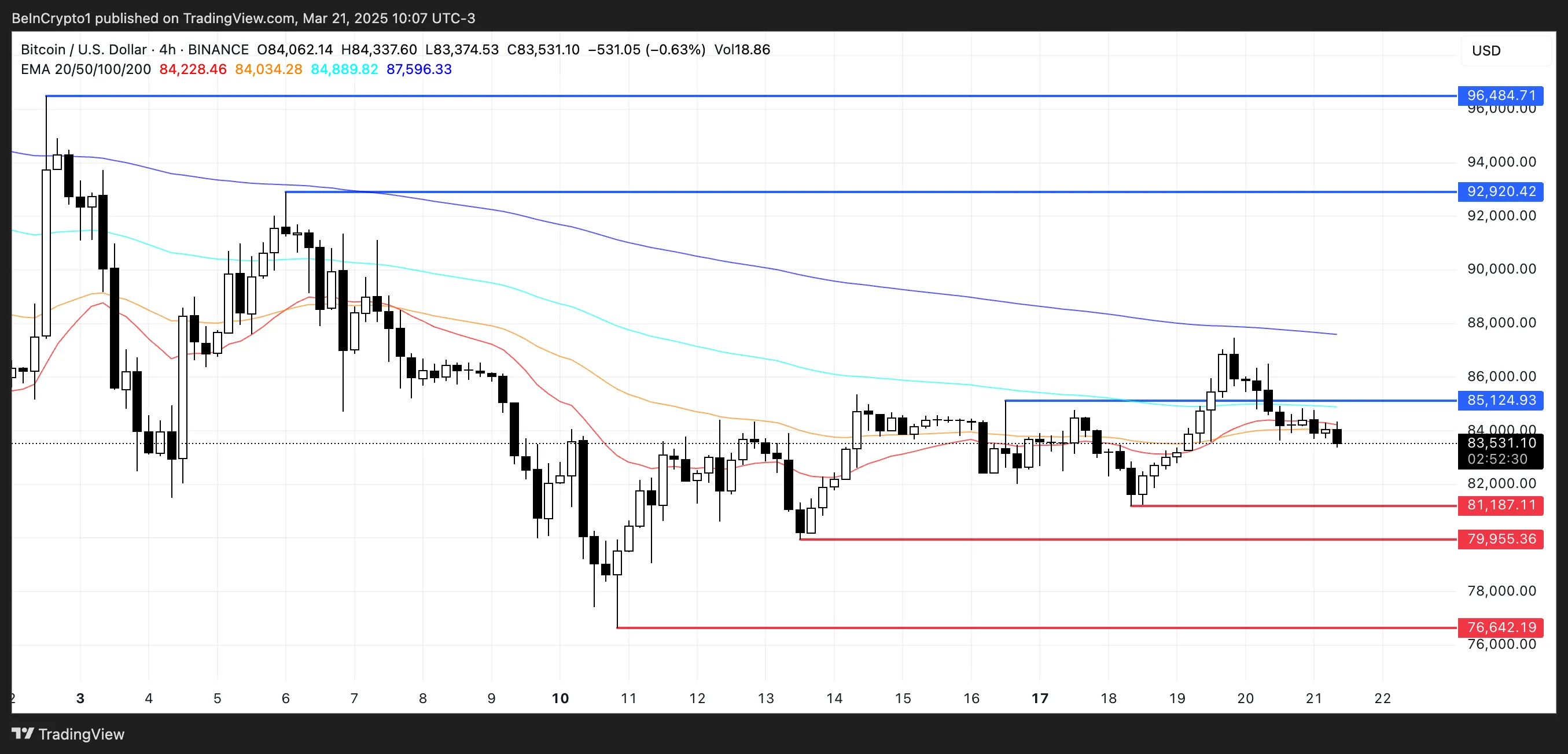 “El leve “impulso de Powell” que vimos en los mercados cripto después de (…) la reunión del FOMC ha llevado a Bitcoin por encima de su media móvil de 200 días, lo cual es ciertamente una señal alcista. Sin embargo, si puede continuar en esta trayectoria es otra cuestión. Si BTC continúa su actual aumento, un nivel de resistencia clave a observar será alrededor de 92,000-93,000 dólares. Si logra romper por encima de esto, podríamos verlo extender el rally hacia su máximo histórico anterior. Sin embargo, probablemente haya demasiada incertidumbre en los mercados para proporcionar el soporte necesario para tal movimiento,” dijo Puckrin a BeInCrypto.