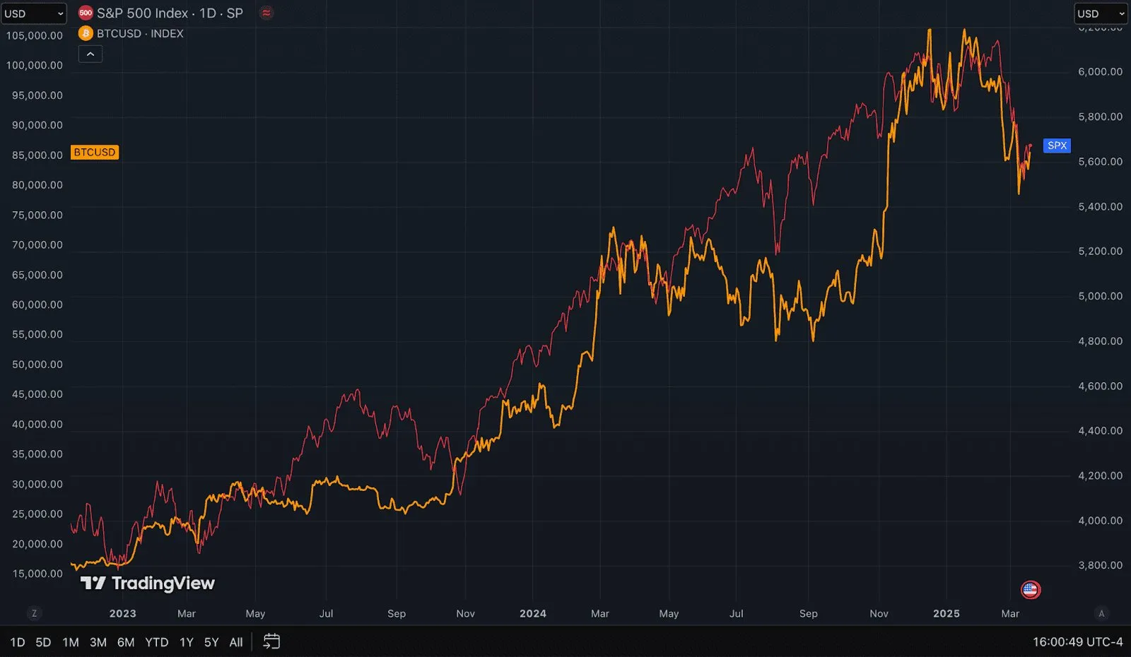 Ahora, la pregunta es, ¿por qué esto impactará a Bitcoin? Dada su estrecha correlación con el S&P 500, una corrección en este último podría significar problemas para BTC. El analista Lark Davis señaló que Bitcoin y el S&P 500 han estado estrechamente vinculados desde 2023: