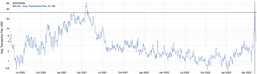 Con las tarifas de transacción promedio frente al dólar estadounidense alcanzando un máximo de 2 años de 30,15 dólares el 8 de mayo de 2023, frente a 2 dólares constantes desde julio de 2021, el problema es claro.
