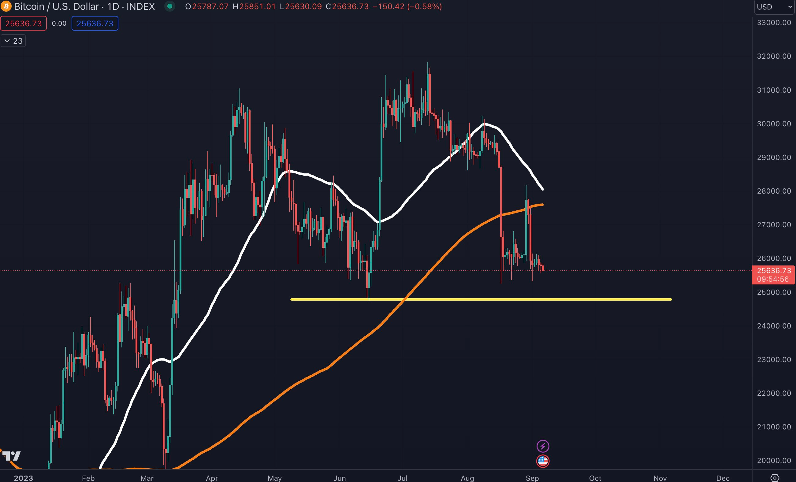 Desde entonces, Bitcoin ha oscilado entre los 25,000 dólares y los 26,000 dólares. Sin embargo, a finales de agosto experimentó un pico temporal por encima de los 28,000 dólares tras la victoria judicial de Grayscalse sobre la SEC.