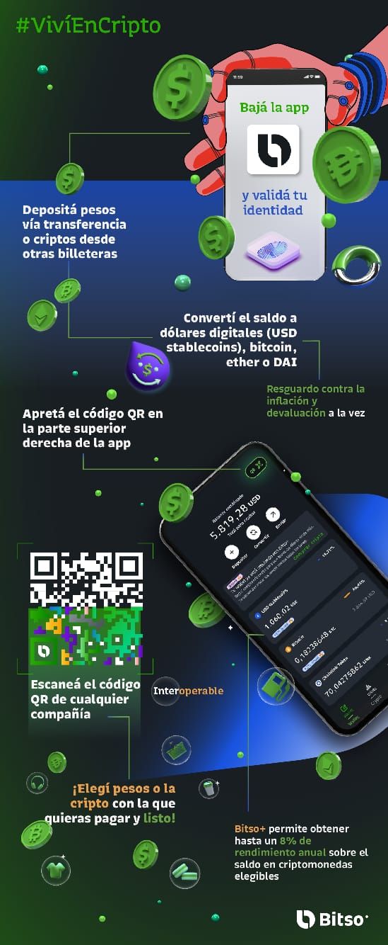 Este nuevo servicio permite a más de 1 millón de usuarios pagar desde la app de Bitso sus gastos cotidianos en cualquier comercio que acepte cobros con QR.