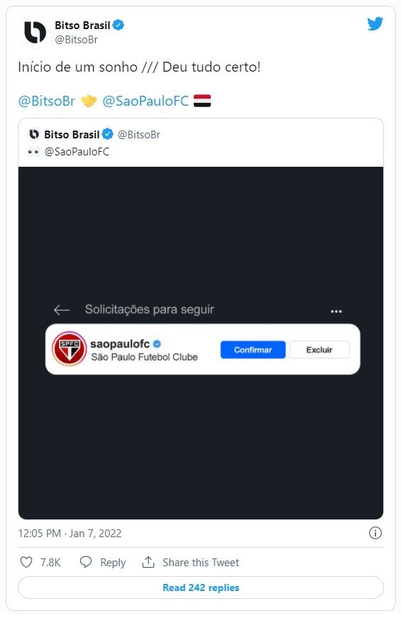 Además de estampar su marca, Bitso pretende, a través de la asociación, ofrecer beneficios relacionados con el criptomercado para los aficionados del São Paulo FC.