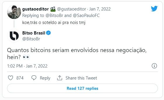 La sociedad puede ir más allá si depende de la afición del club. Un hincha le pidió a Bitso que contratara a Soteldo, delantero venezolano que ha sido especulado en la tricolor. En respuesta, el perfil oficial del exchange cuestionó cuántos BTC se necesitarían para esto.