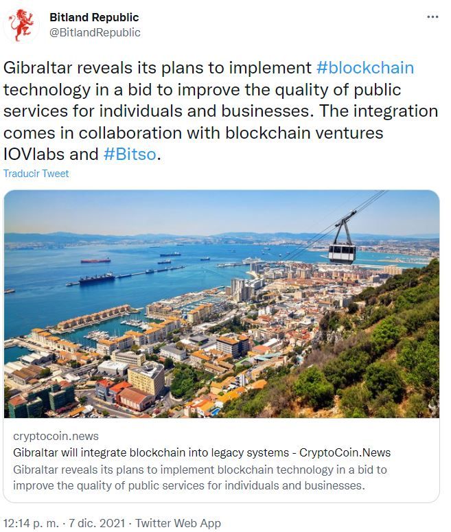 “En Bitso, creemos que el sector público y el privado pueden trabajar juntos para crear soluciones basadas en cripto y blockchain profundamente impactantes. Estamos orgullosos de trabajar en estrecha colaboración con el Gobierno de Gibraltar para aumentar el uso de la tecnología en sectores industriales vitales. Gibraltar es un ejemplo fenomenal de entidades gubernamentales que adoptan el ecosistema criptográfico para mejorar un mayor crecimiento de nuestra sociedad, y Bitso está increíblemente orgulloso de ser parte de su comunidad criptográfica”.