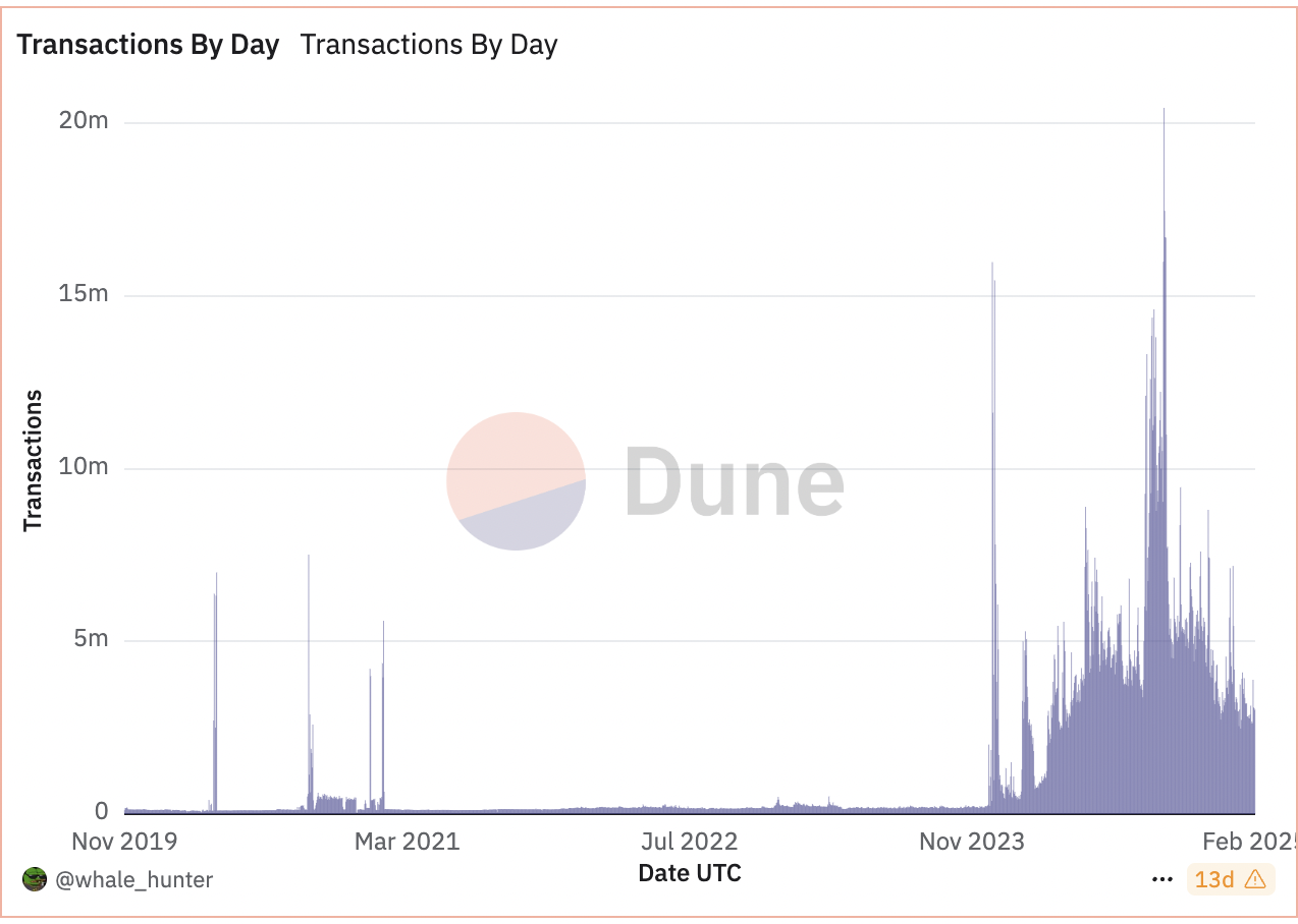 Datos de Dune Analytics revelan que TON tiene 2,3 millones de transacciones diarias, y ha logrado impactar a 42,7 millones de usuarios, mientras que las tarifas del ecosistema por semana es de alrededor de 6,248 TON. Además, su pico de transacciones lo logró a finales de 2024, cuando logró 1,5 millones al día, al tiempo que integraba 721,608 usuarios al día.