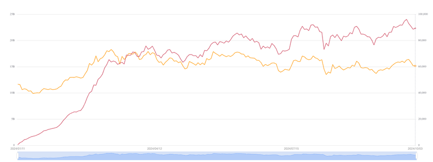 Según los últimos datos de SoSoValue, el alijo de Bitcoin de iShare Bitcoin Trust (IBIT) de BlackRock tiene un valor de 22,33 mil millones de dólares.