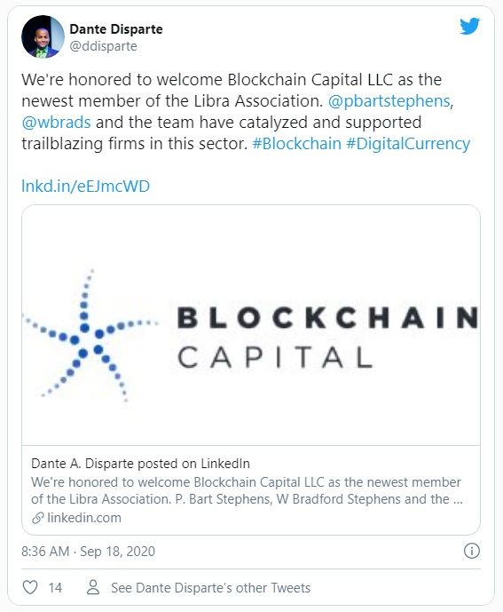 Más recientemente, Libra ha recurrido a Blockchain Capital, una firma de asesoría e inversión de blockchain con más de 300 millones de dólares en activos bajo administración para unirse a sus filas. Blockchain Capital ahora es miembro de la Asociación Libra, y se une a empresas como Coinbase, Xapo y Union Square Ventures, así como a empresas que no pertenecen a la blockchain, como Uber, Lyft y Spotify, por nombrar algunas.