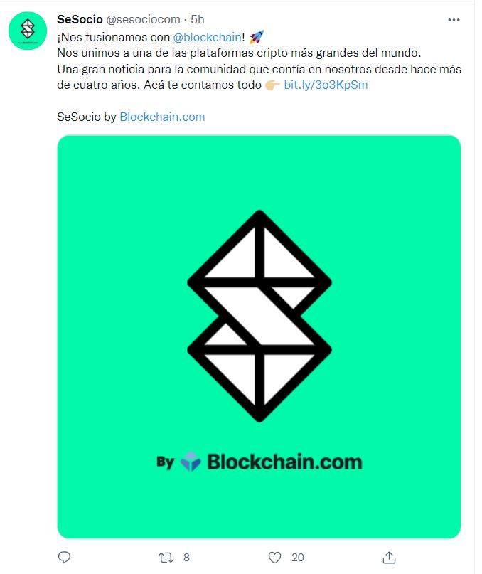 Hace pocas horas, ha sido anunciada la adquisición de SeSocio una fintech argentina dedicada a la comercialización de criptoactivos, manejos de inversión y gestión de capital, por parte de Blockchain.com, uno de los exchanges con más trayectoria y reconocimiento a nivel global. En lo que se considera, sin duda, una de las adquisiciones más grandes en Latinoamérica, y específicamente la más grande que haya realizado Blockchain.com hasta la fecha.