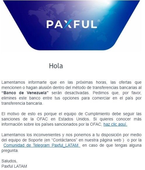 La iniciativa de HodlHodl cobró especial relevancia este mes luego de que Paxful, el principal competidor mundial de Localbitcoins, anunciara a los traders venezolanos que no podían hacer operaciones a través del Banco de Venezuela —el banco más grande el país— debido a las sanciones unilaterales impuestas por el gobierno de Estados Unidos a Venezuela.