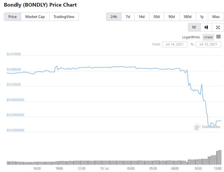 Ese token se ha desplomado un 60% a raíz del exploit según CoinGecko. Antes del ataque, BONDLY alcanzó un máximo intradiario de 0,063 dólares y en las últimas horas se hundió hasta los 0,023 dólares.