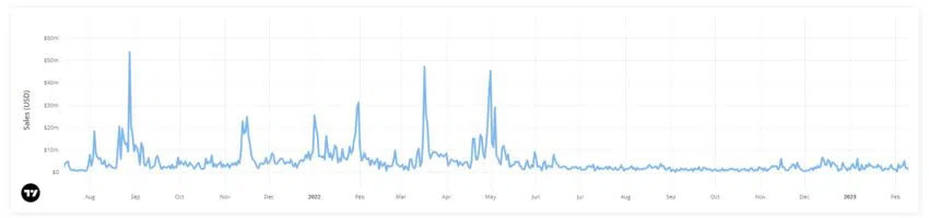 Los picos anteriores de la colección se lograron en agosto de 2021, con ventas de 95,477 ETH.