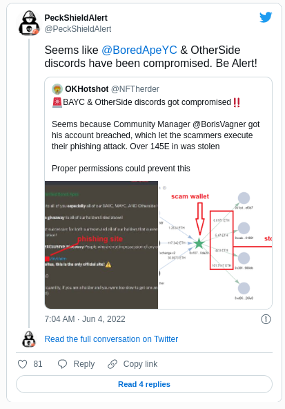Esta no es la primera vez que el servidor Discord de BAYC ha sido pirateado, aunque parece que el más reciente es más significativo. Hace menos de 2 meses, los hackers violaron el servidor de Discord de Bored Apes y la página de Instagram.