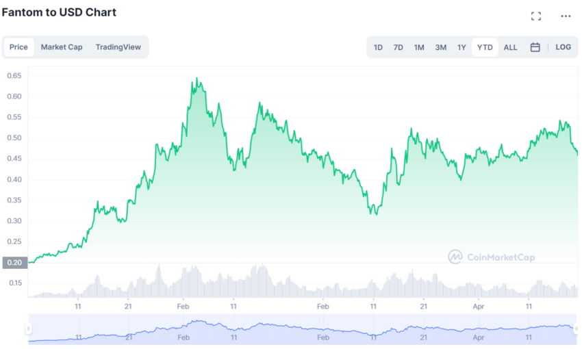 Fantom ha tenido un sólido primer trimestre hasta el momento, comenzando el año en poco menos de 0.2 dólares. El precio de FTM actualmente se encuentra en 0.45 dólares.