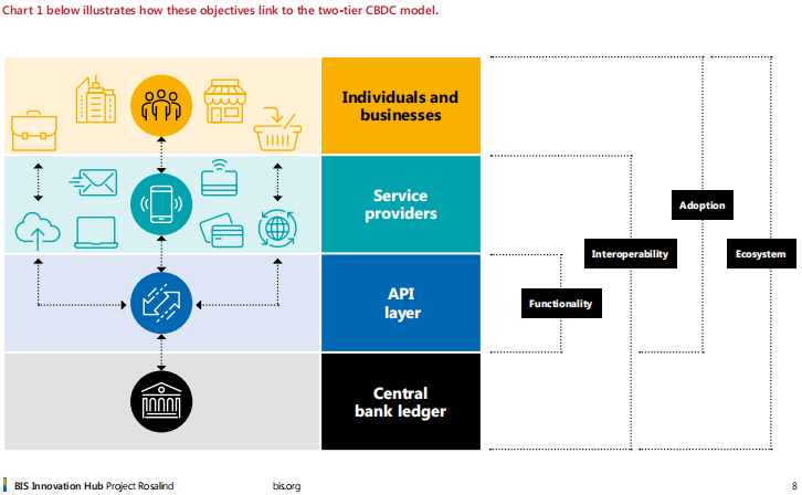 El Proyecto Rosalind es una iniciativa experimental que se centra en explorar las interfaces de programación de aplicaciones (APIs) para la moneda digital de banco central (CBDC) minorista. El proyecto se basa en un modelo de dos niveles que representa una asociación entre el sector público y privado.