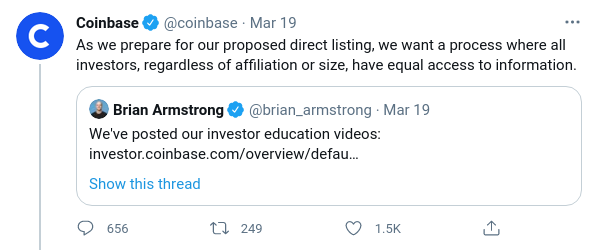 Coinbase anunció en enero de 2021 que optaría por una cotización directa en lugar de una IPO. El lanzamiento público tan esperado ha hecho que los medios de comunicación se vuelvan locos y los analistas creen que le influirá en el mercado de las criptomonedas.