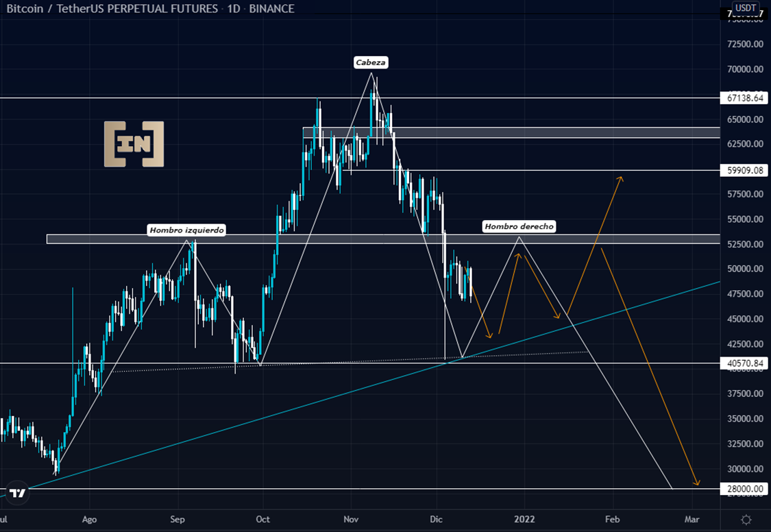 En los últimos días el precio de BTC ha venido formando un patrón lateral entre los rangos de los 50,000 dólares y 45,000 dólares, sin embargo, presenta con dominio la tendencia bajista.