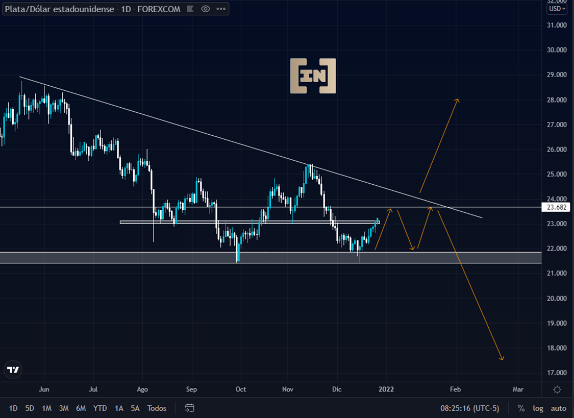La plata se encuentra equilibrada entre los 21 y 24 dólares por onza.