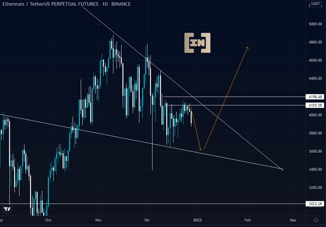 El precio de Ethereum se encuentra en fase de acumulación entre los 4,100 dólares y los 3,600 dólares.
