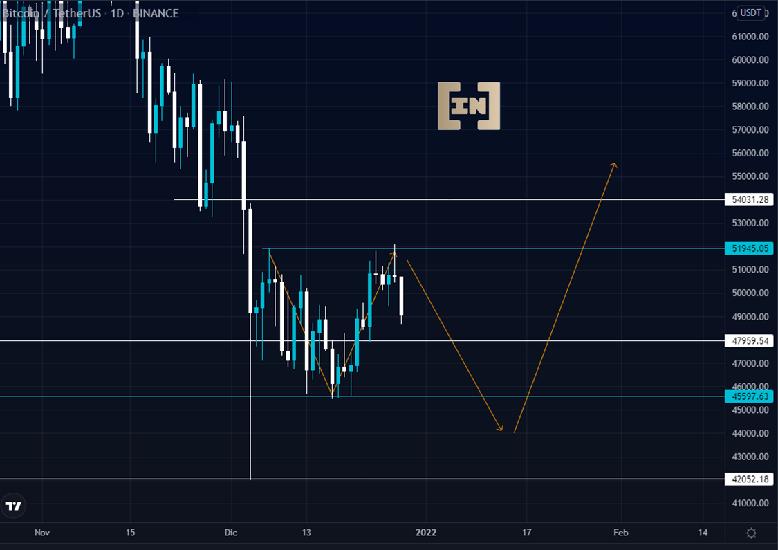 El precio de Bitcoin se encuentra en fase de acumulación entre los 45,600 dólares y los 52,000 dólares.