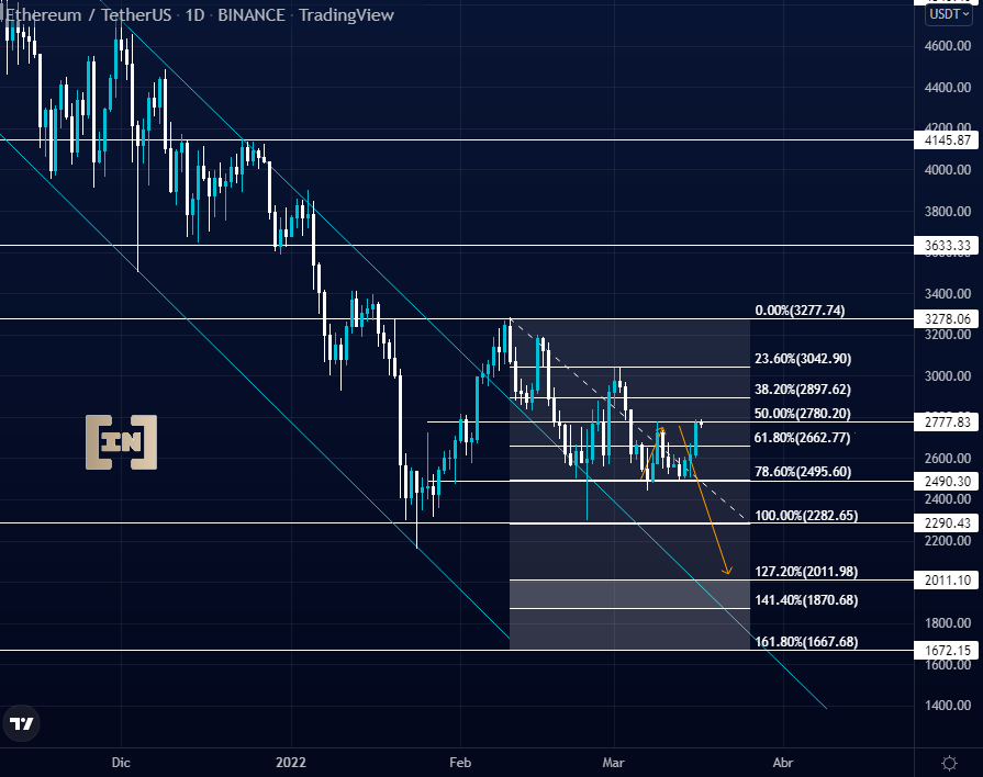 En el caso de que sea una redistribución en el precio de ETH, su precio caería al área de los 2,000 dólares acompañando a BTC en su tendencia a los 30,000 dólares.