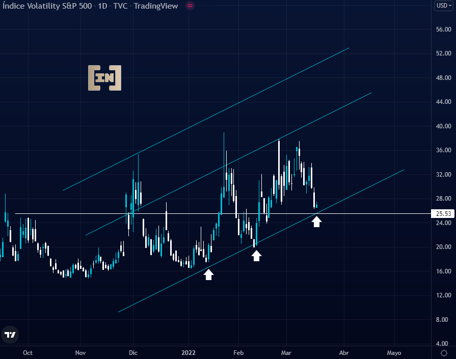 Contrariamente, de presentar una ruptura en el área de los 25 puntos puede indicar una señal positiva para el mercado, lo que proyecta una recuperación de la bolsa, acciones, y criptomonedas, y negativa para las materias primas.
