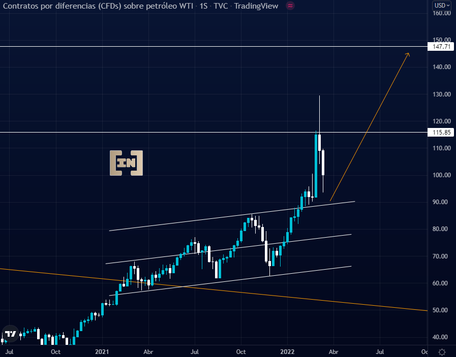 El precio del petróleo, debido a las fuertes sanciones impuestas por occidente a Rusia, se mantendrá alcista con proyección a los 147 dólares.