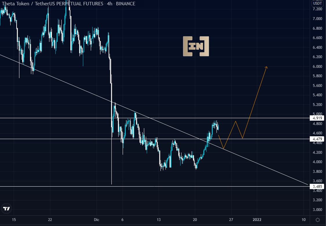 La ruptura sobre el área de los 4.4 dólares proyecta la cotización de THETA sobre los 6 dólares.